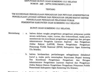 SK Bupati OKU Selatan Nomor 269_KPTS_DISKOMINFO_2018 Tentang LAPOR SP4N